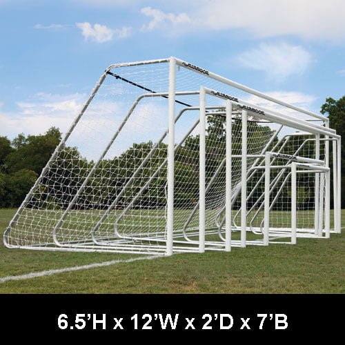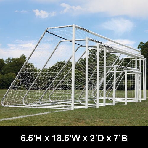 Goal is available in a variety of sizes to accommodate players of all skill levels. Back bottom bar is included with 24’, 21’ and 18.5’ wide models.
