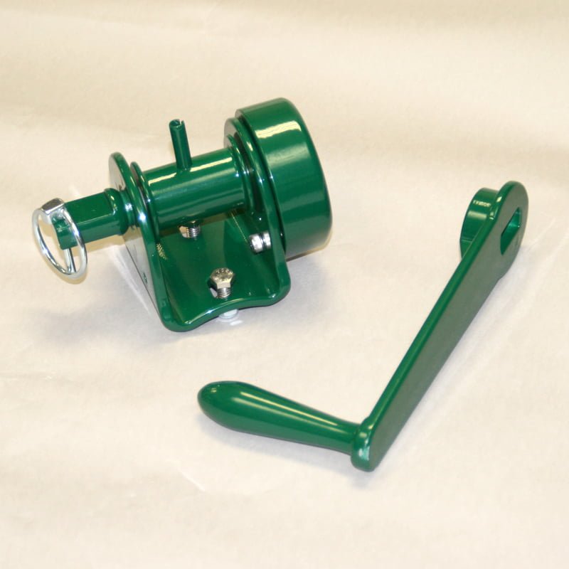 Aluminum construction with a smooth operation. Slotted to fit most posts. Removable Handle. Choose from black or green powder coat finish.